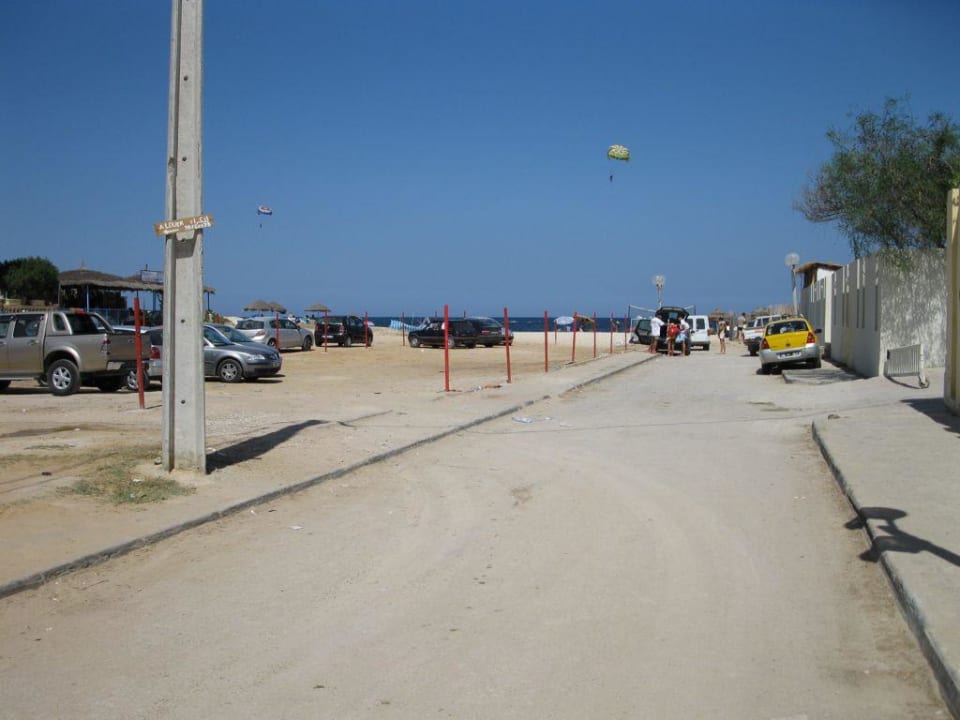 Idąc drogą na wprost wejdziecie bezpośrednio na plażę. Uwaga śmierdzi!!! Jest inne wejście obok tamtej żółtej taksówki znacznie przyjemniejsze, tam również można zamawiać napoje.