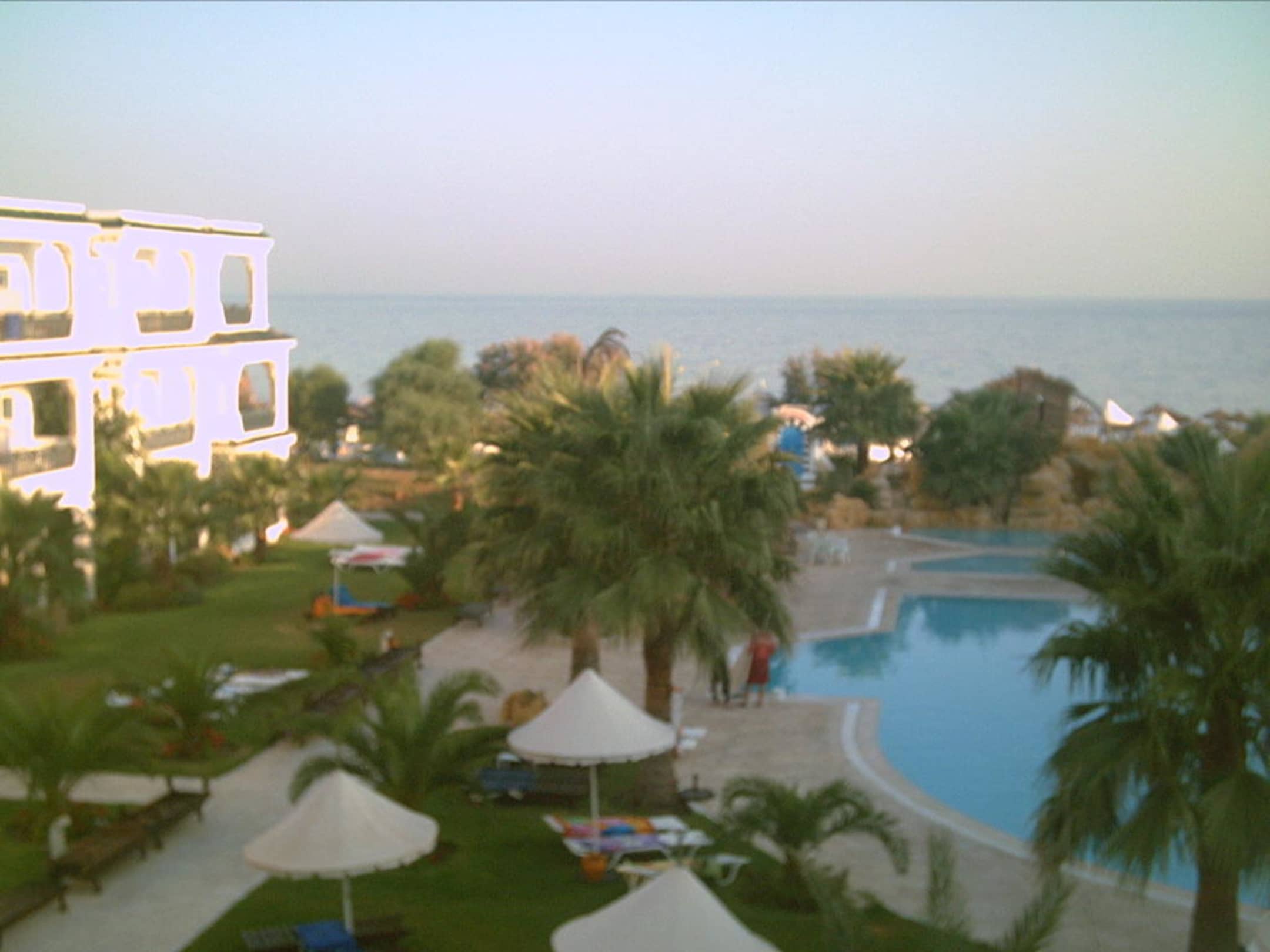 Ausblick auf Hotelanlage, Pool und Meer...