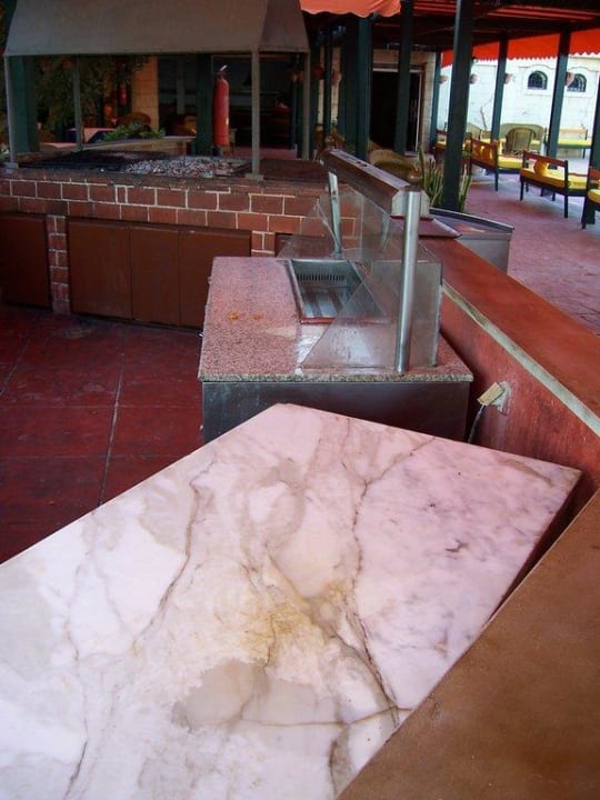 Arbeitsplatten StrandbarEssens- und Fettreste auf den Arbeitsplatten von der Strandbar.