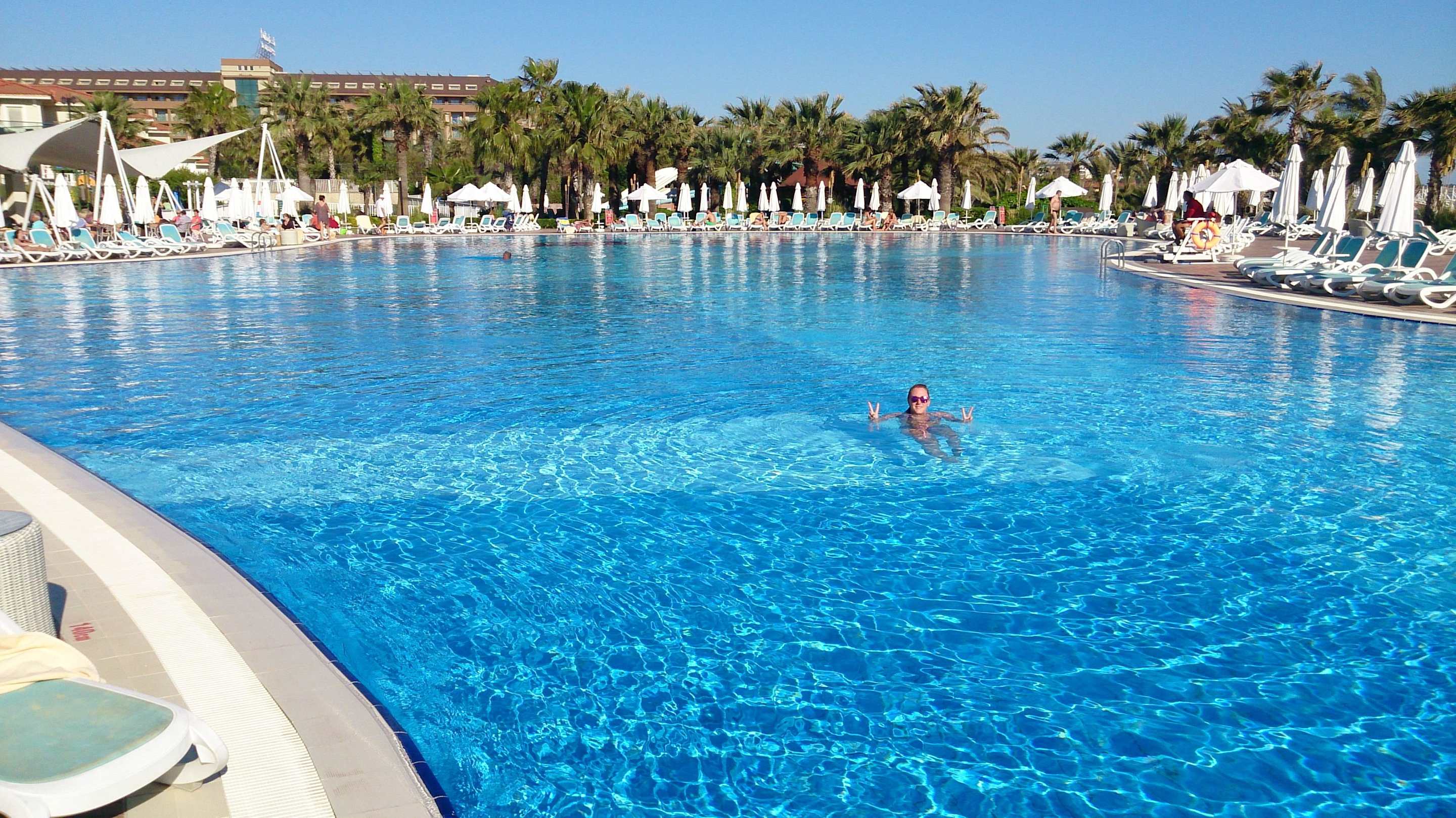 Richtig viel Platz im riesen Pool oberhalb Strand