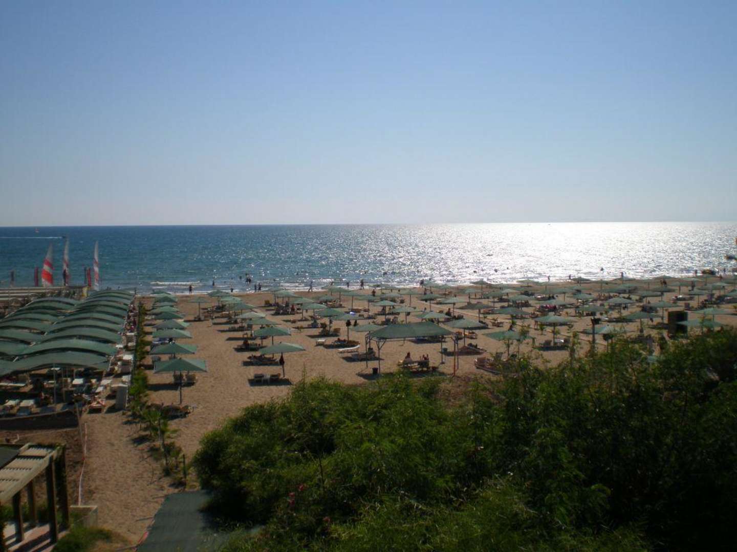 Strandabschnitt des HotelsStrandabschnitt aus Sicht der Wasserrutschen, links der Strandbereich des Kumköy Resort & Spa Hotels