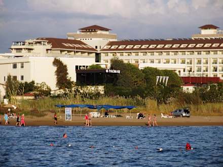 Das Hotel vom Meer aus gesehen