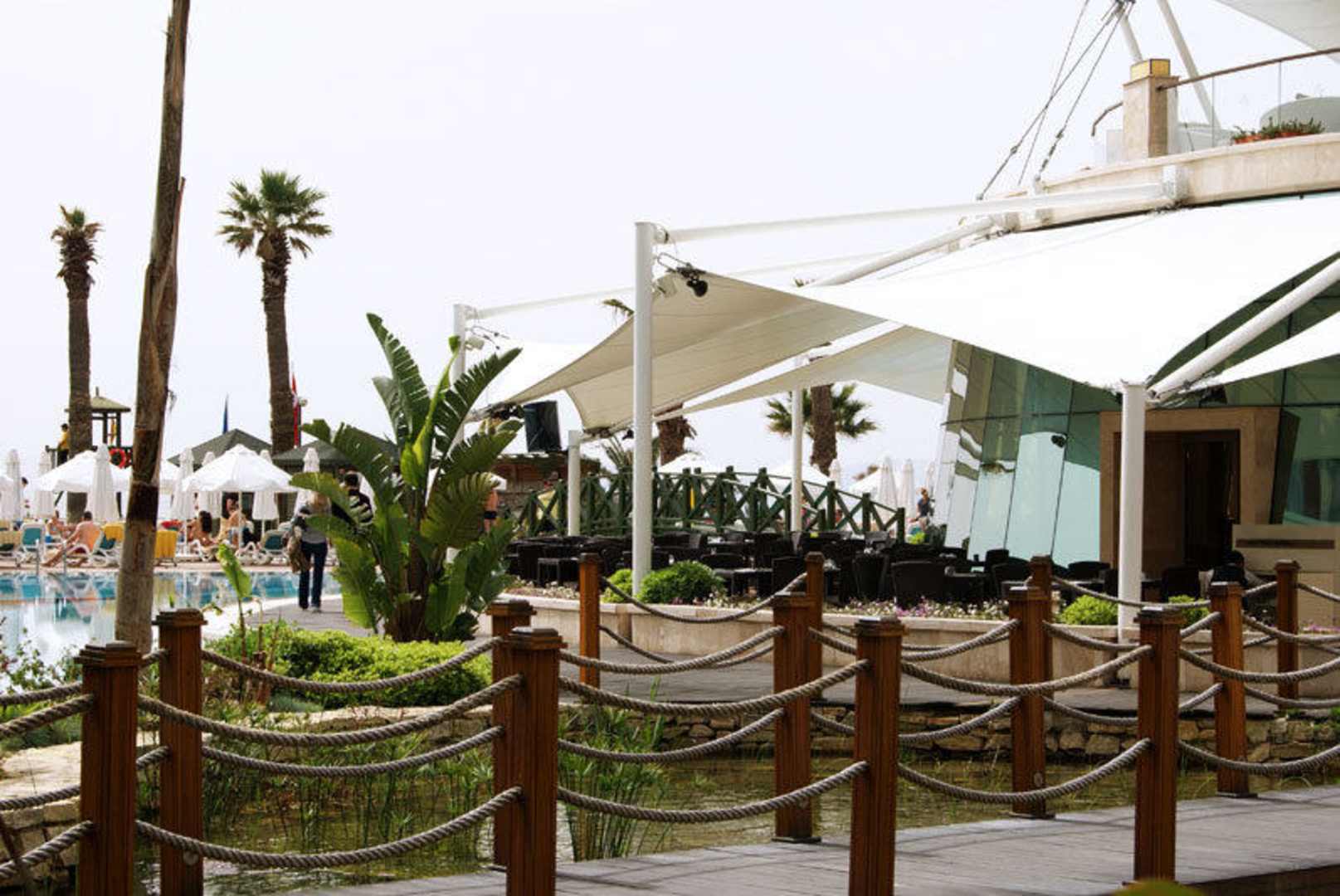 Steg über den Pool