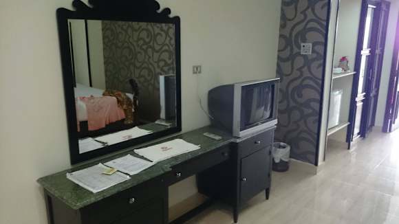 Vorderer Schlafbereich mit FersehrNeu renoviertes Zimmer ( Zimmernummer 223 ) sehr, sehr groß, gleicht eher einem Familienzimmer