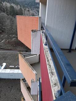Auch hier sehr unschön anzuschauen: Verwitterter Beton.