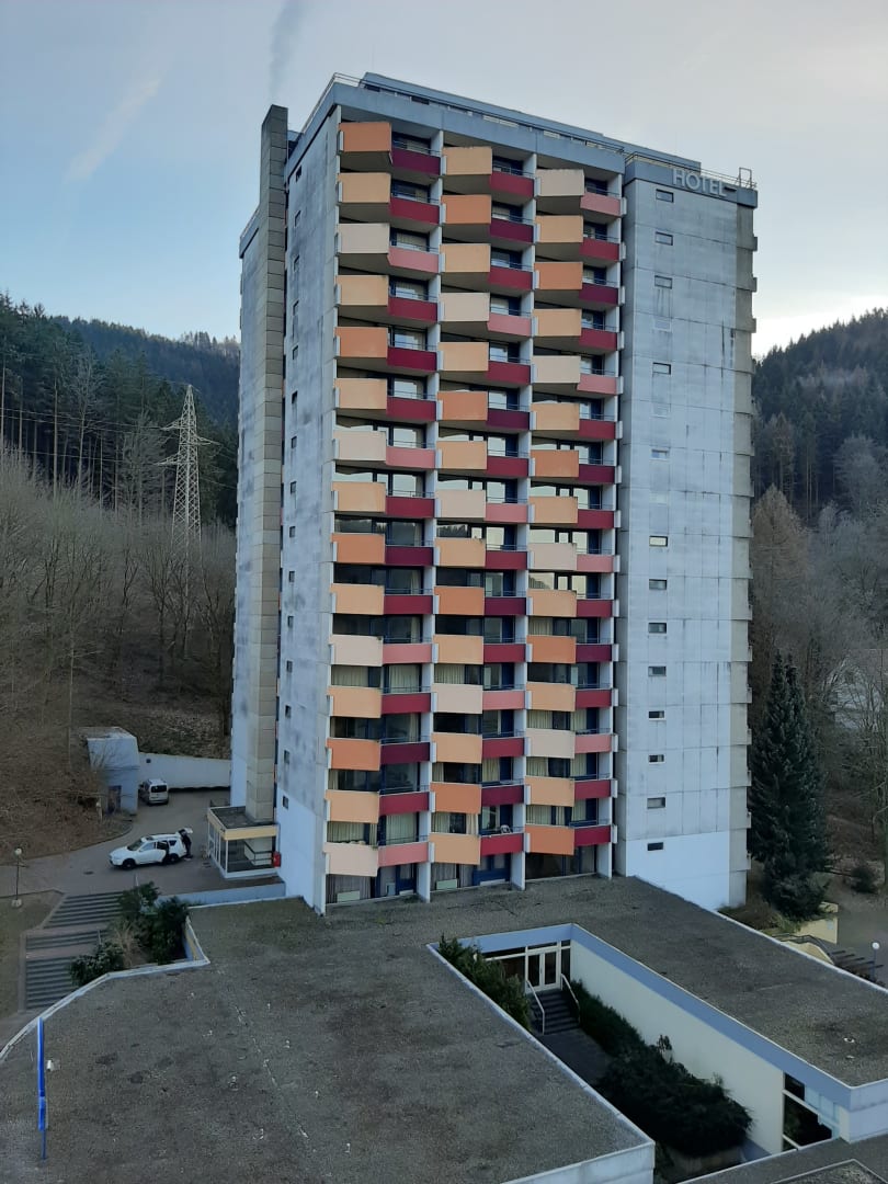 Überall verwitterter Beton als Aussicht vom Balkon