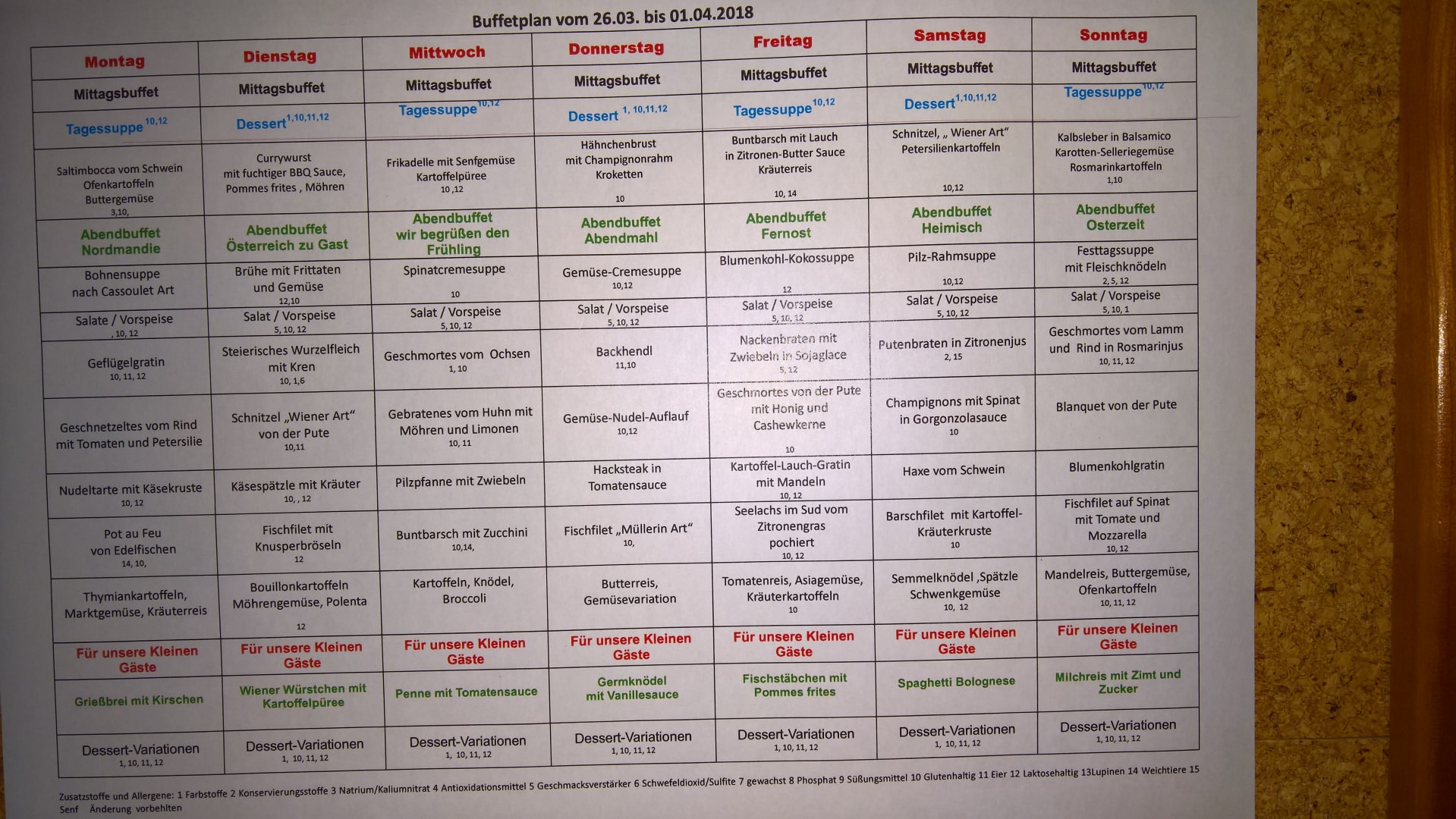 Der Wochenspeiseplan