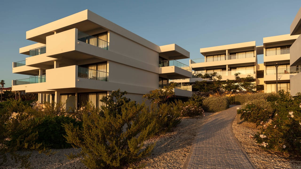 Außenansicht bei Sonnenuntergang