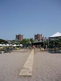 Blick vom Strand zum Hotel