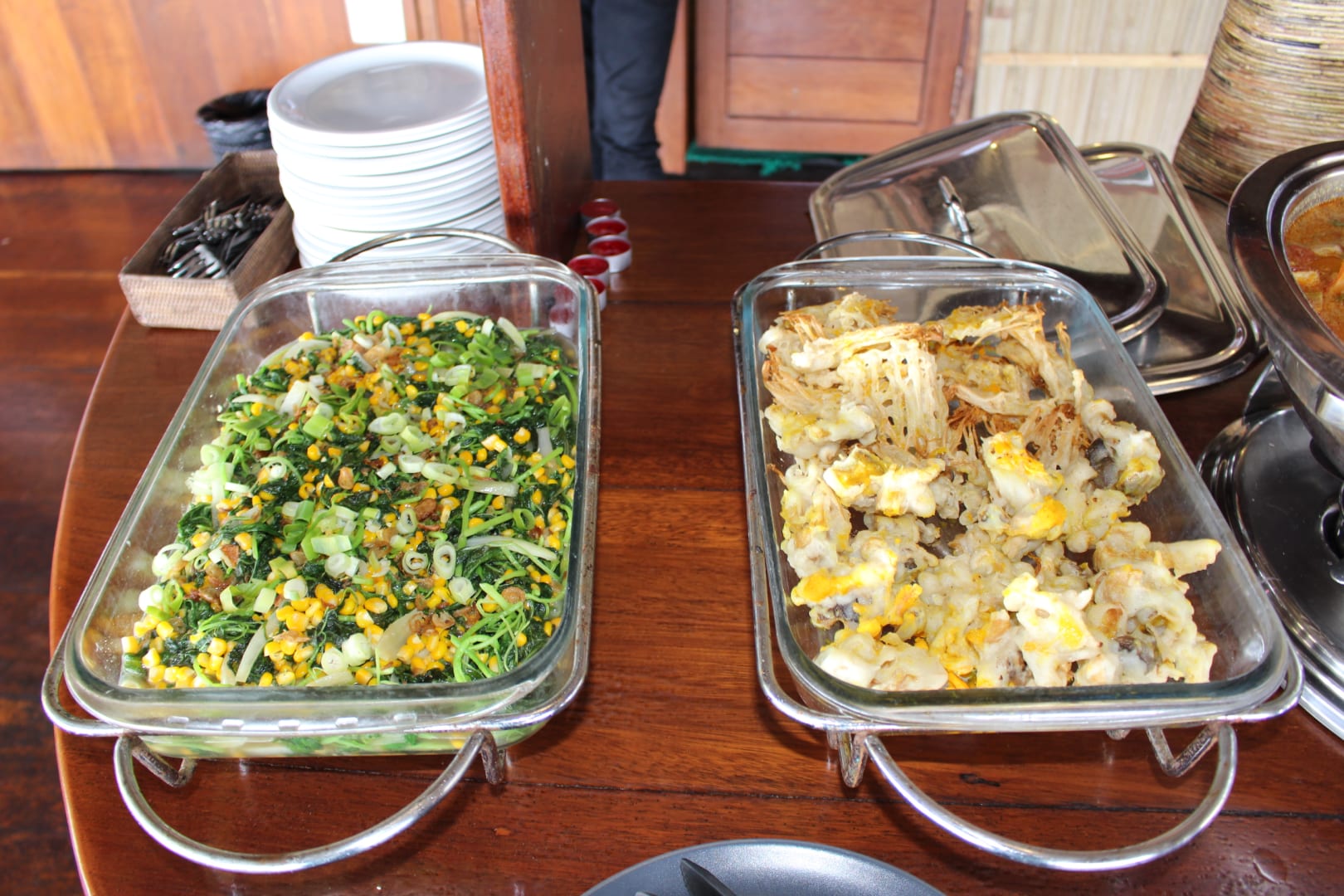 Mais/Spinatgemüse und Fisch-irgendwas