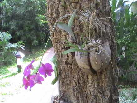 Viele Bäume mit Orchideen
