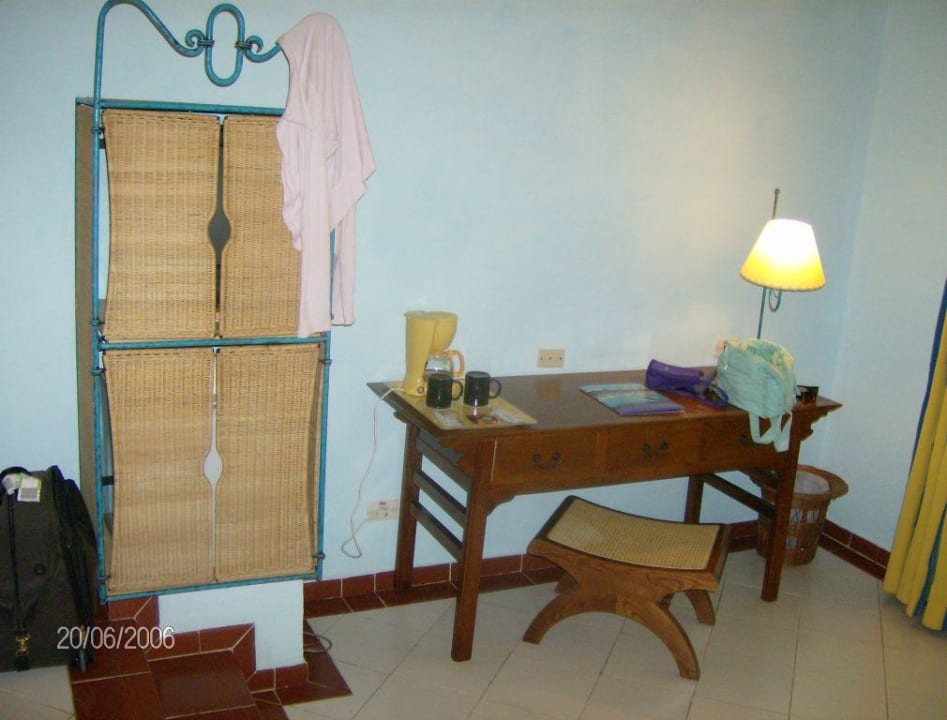 Fernseher, Kühlschrank, Schreibtisch