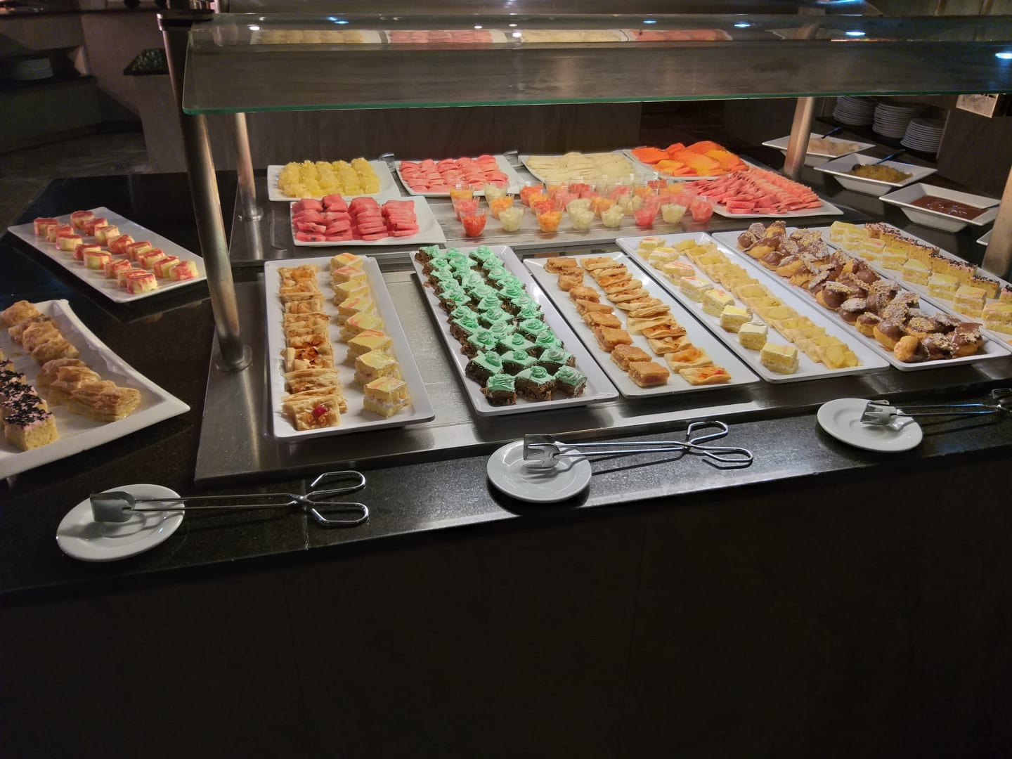 Immer Obst und Süßkram, da kann man zufrieden sein. Auch die Salate und Meeresfrüchte waren sehr gut.
