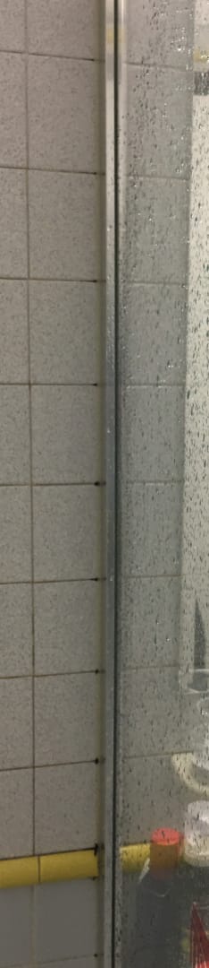 Die Ecken in der Dusche, überall Schimmelspuren