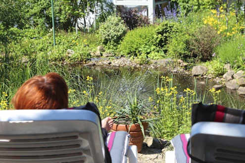 Gartenteich mit Strand