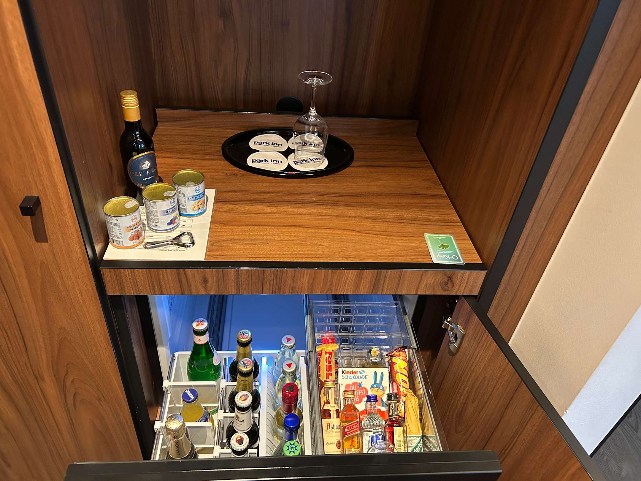 Minibar im Zimmer die Preise sind ok. Kaffee und Tee Zubereitung fehlte leider