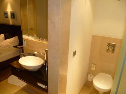 hier stehe ich mit dem Rücken an der Zimmertür. Wo bleibt da das Private. und die Lüftung im WC .... na ich denke das kann sich jeder denken!