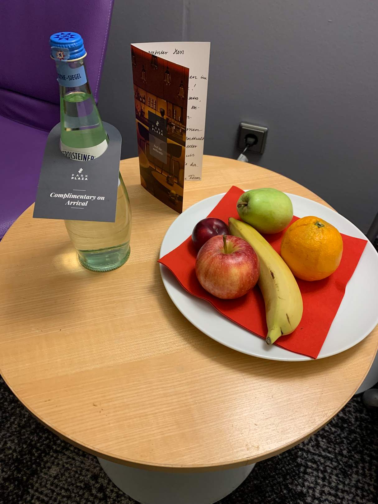 Obstteller und Begrüßung