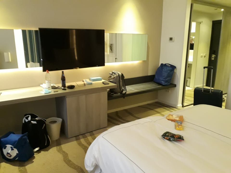großes modernes Zimmer mit großem Spiegelschrank