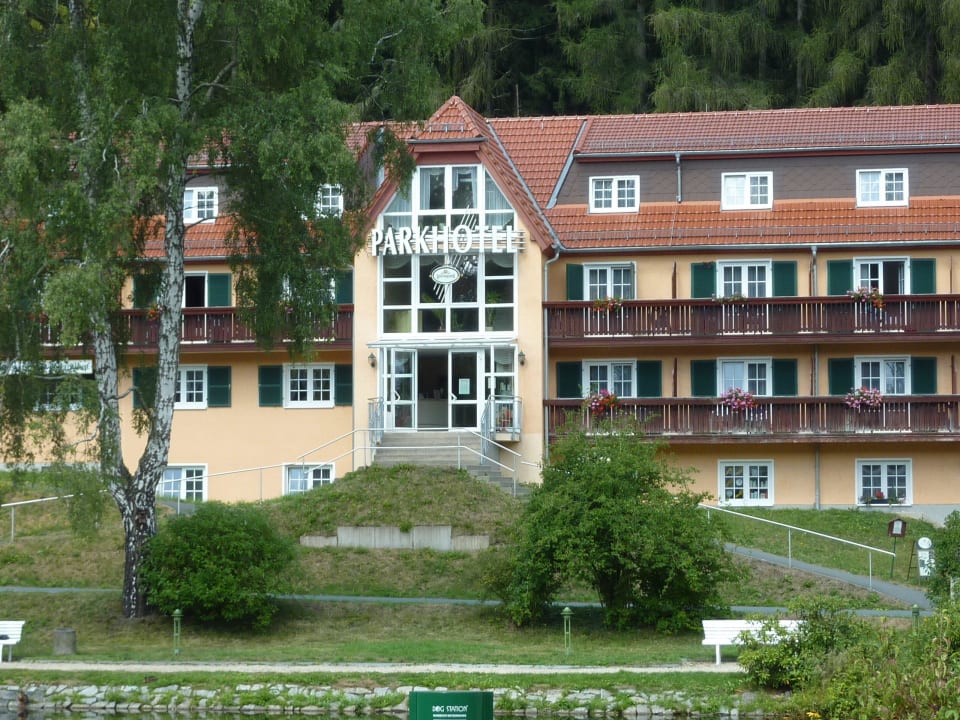 Blick vom Weiher aus Parkhotel Bad Brambach