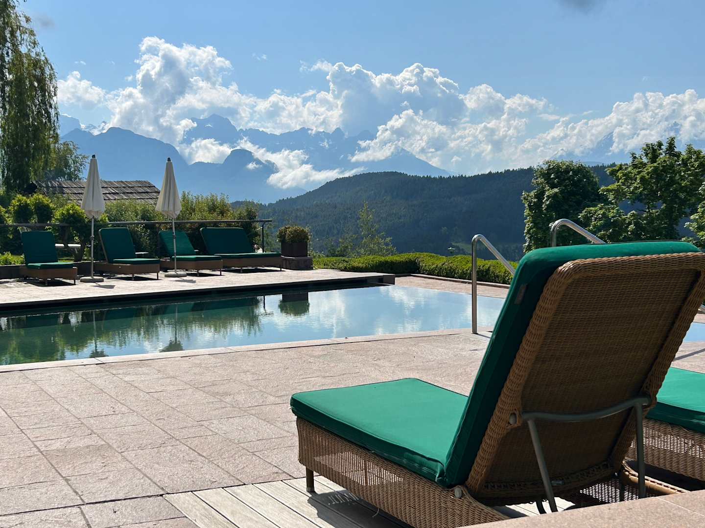 Infinitypool vor Berglandschaft.