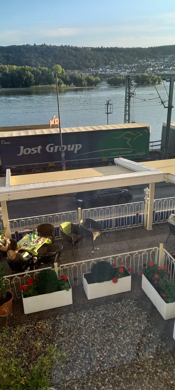 Güterzüge direkt vor dem Hotel