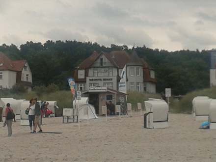 Blick vom Strand auf das Hotel