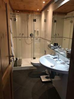das gut eingerichtete große Bad