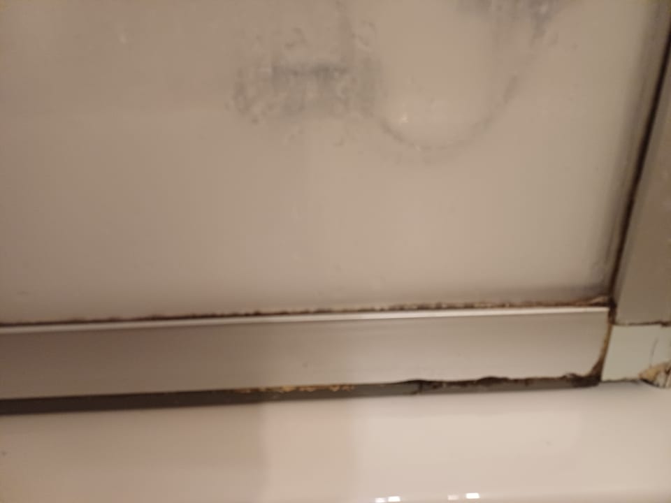 Total verdreckte und kaputte Duschabtrennung im Badezimmer....