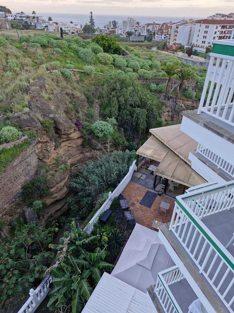 Blick von unserem Balkon in den Barranco, der das ganz Grundstück teilt.
