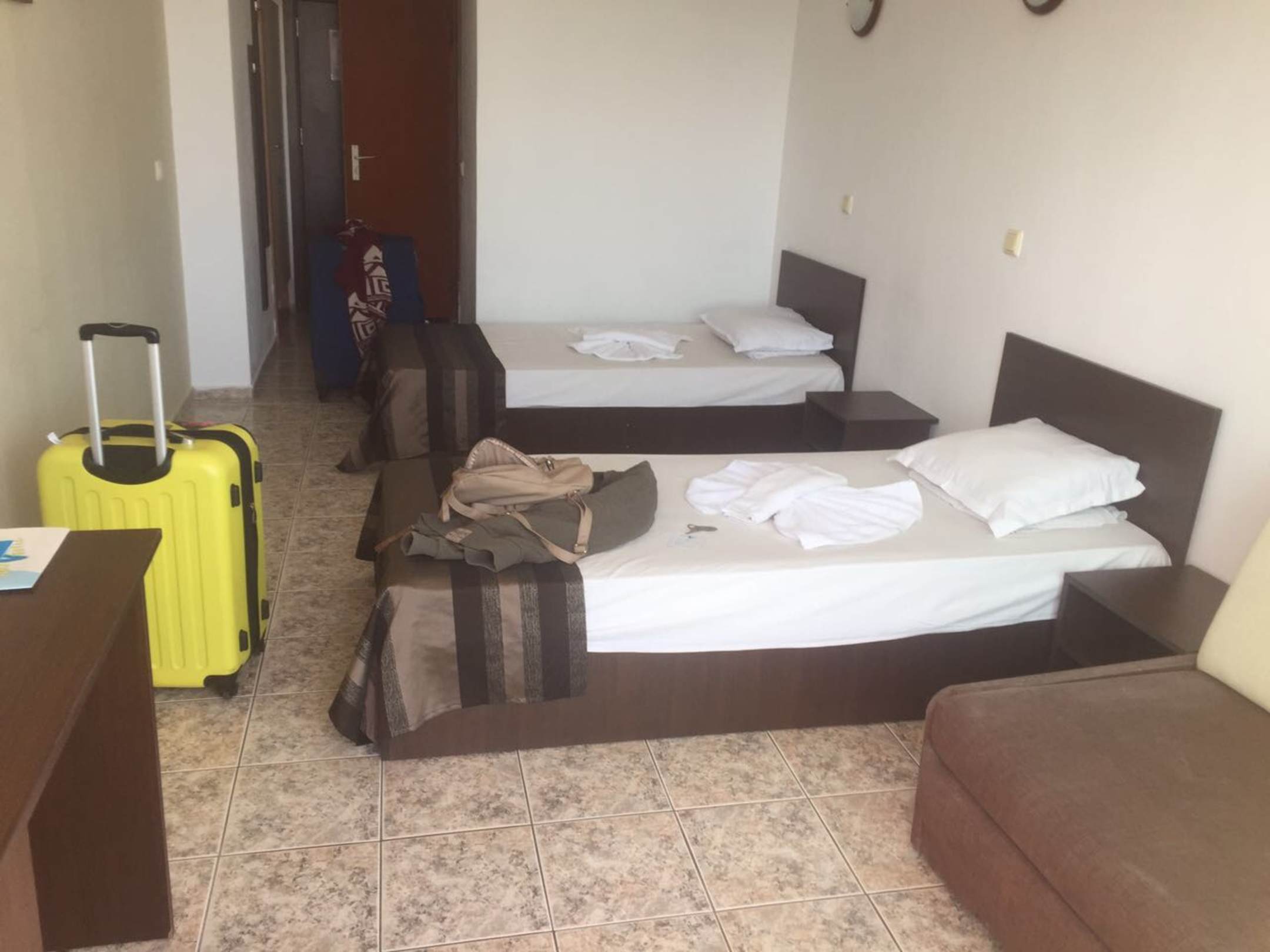 Das zimmer selbst war relativ sauber, nur beim betreten des Zimmers überfuhr einen ein stinkender und beissender Chlor geruch, der uns dazu brachte in den gegenüberliegenden Supermarkt zu stürmen und ein Raumspray zu kaufen.
