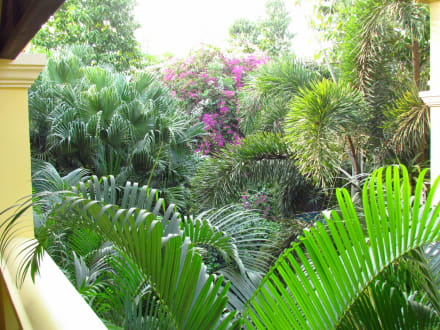 Blick vom Balkon auf den schönen Garten