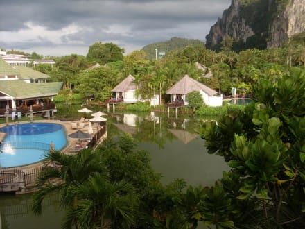 Blick auf Lagune und Pool