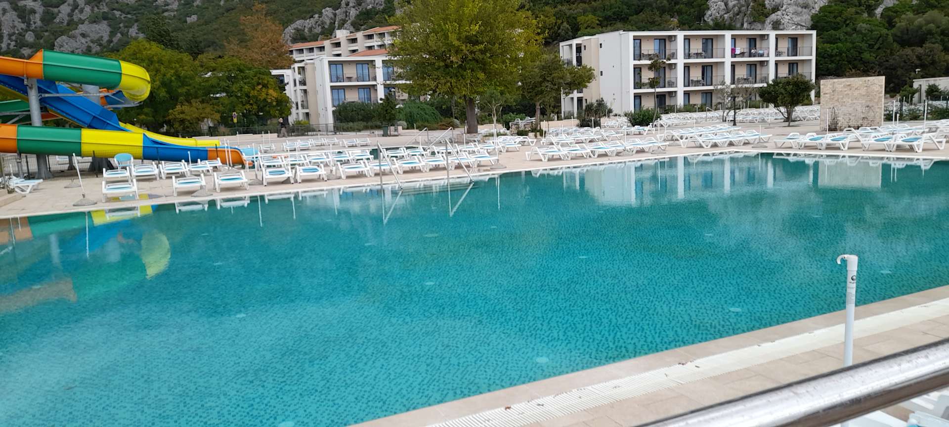 Poolanlöge und Wohnblocks im Hintergrund