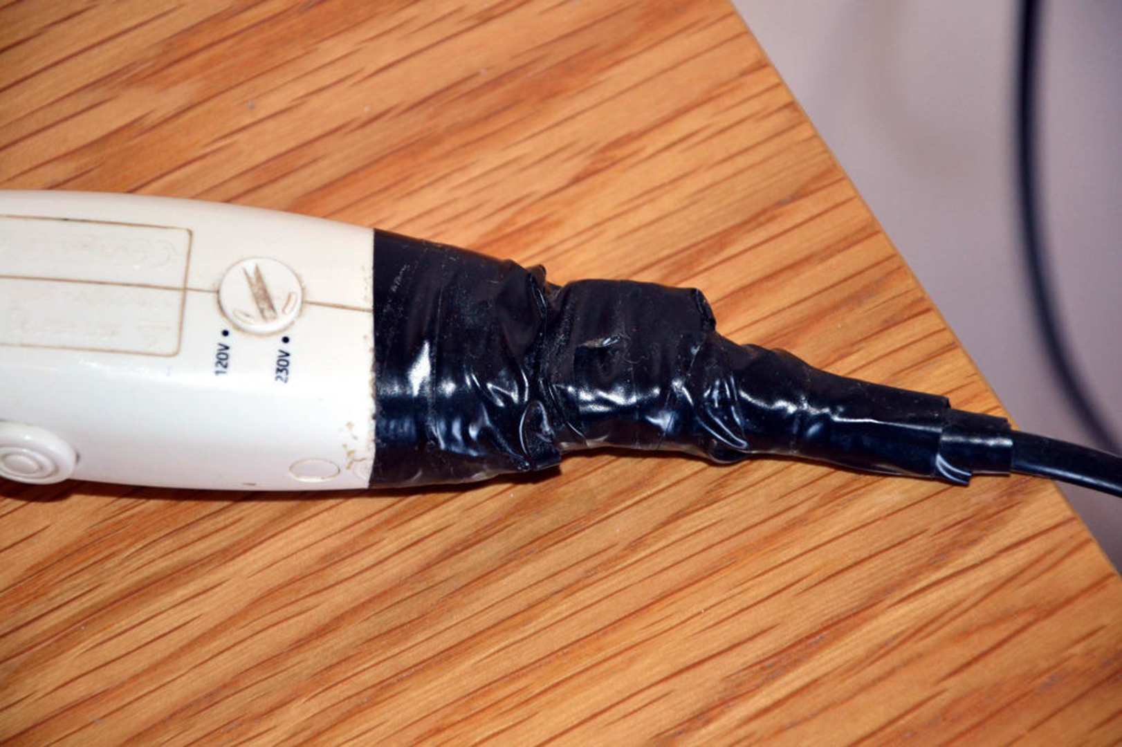Föhn, umwickelt mit Isolierband.