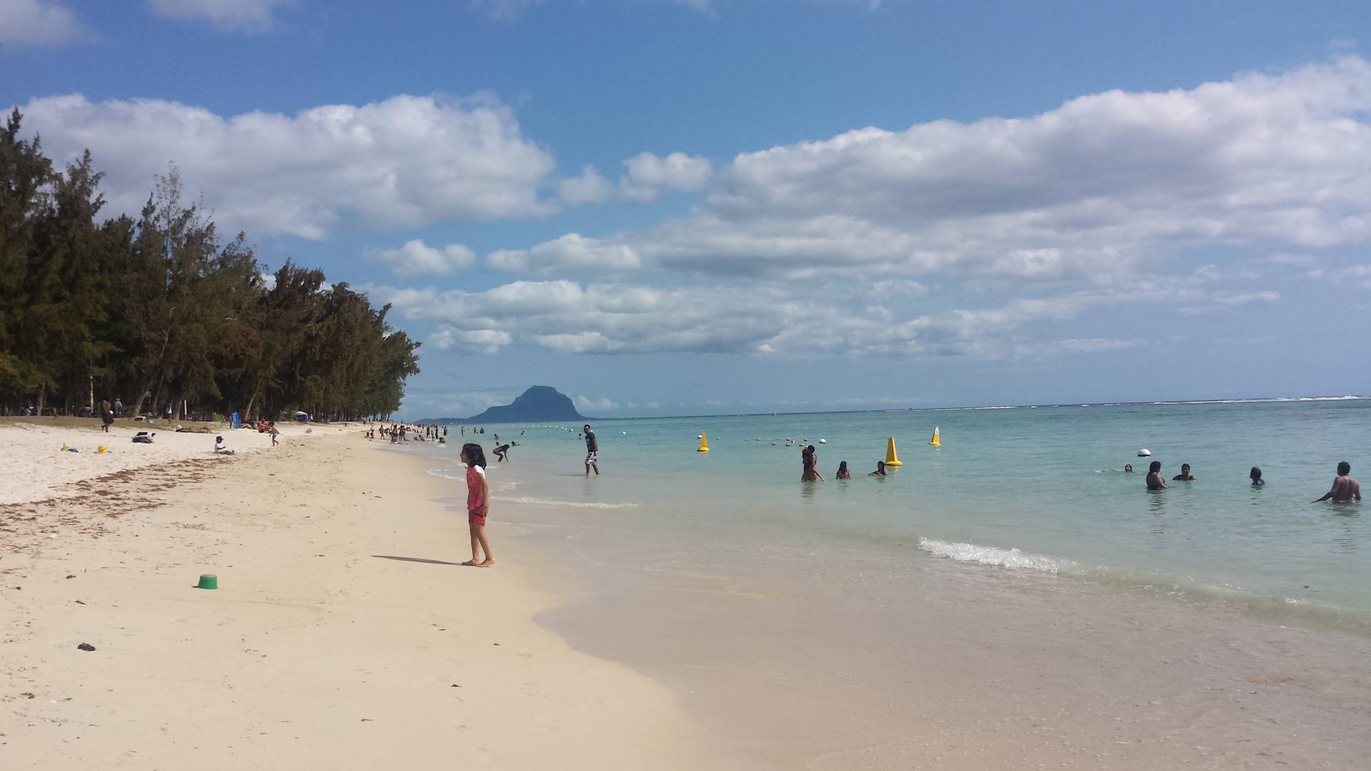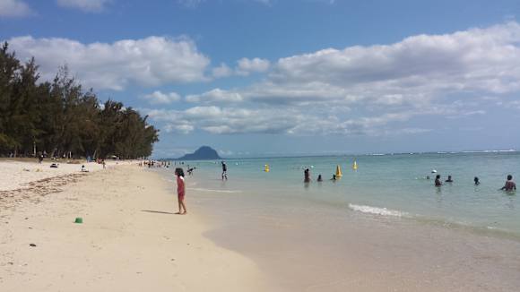 der öffentliche Strand Flic en Flac am Sonntag