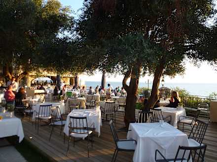 Abendessen unter Olivenbäumen. Schattenplätze draußen waren begrenzt.