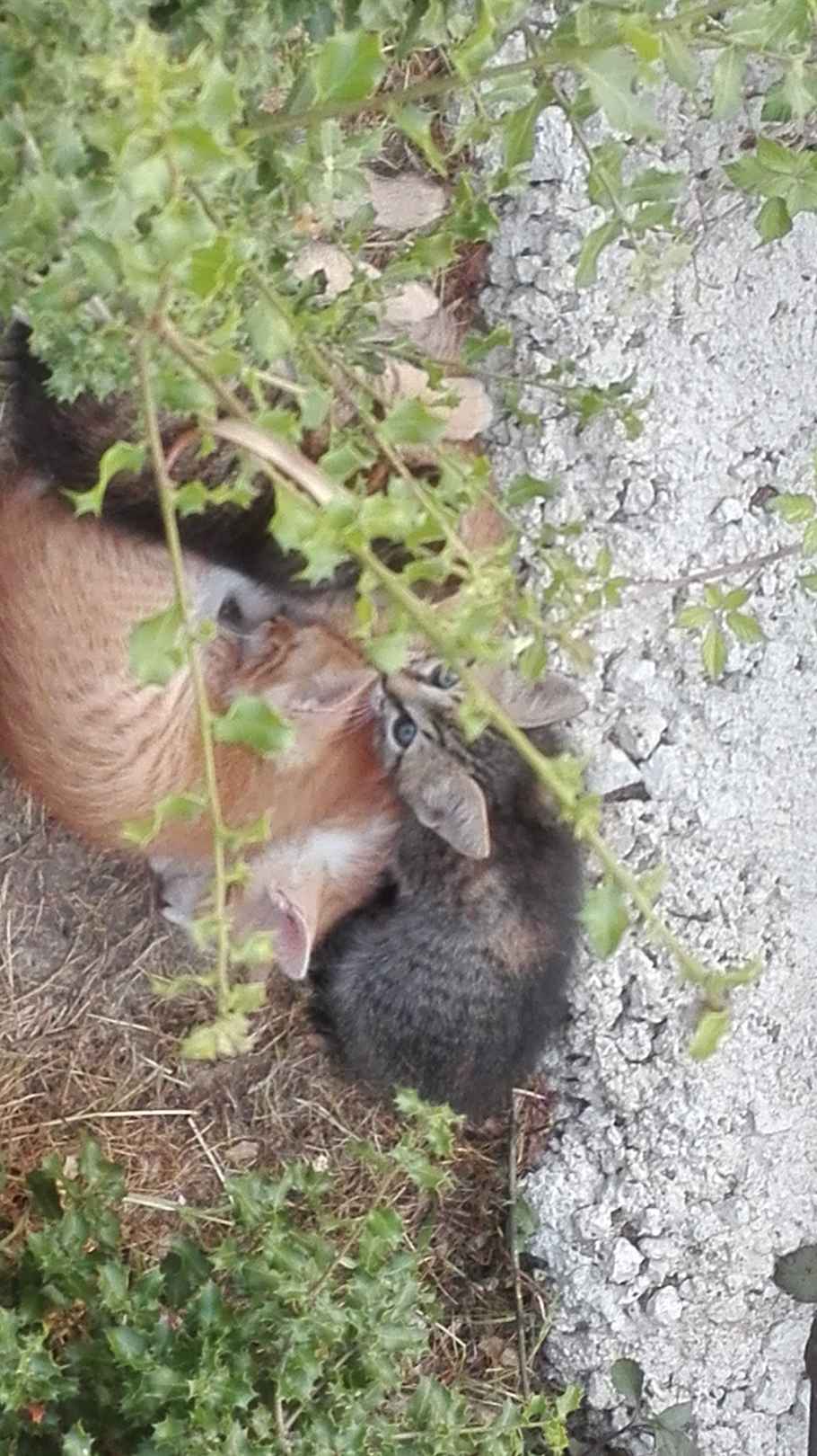4 kleine Katzerl beim Restaurant