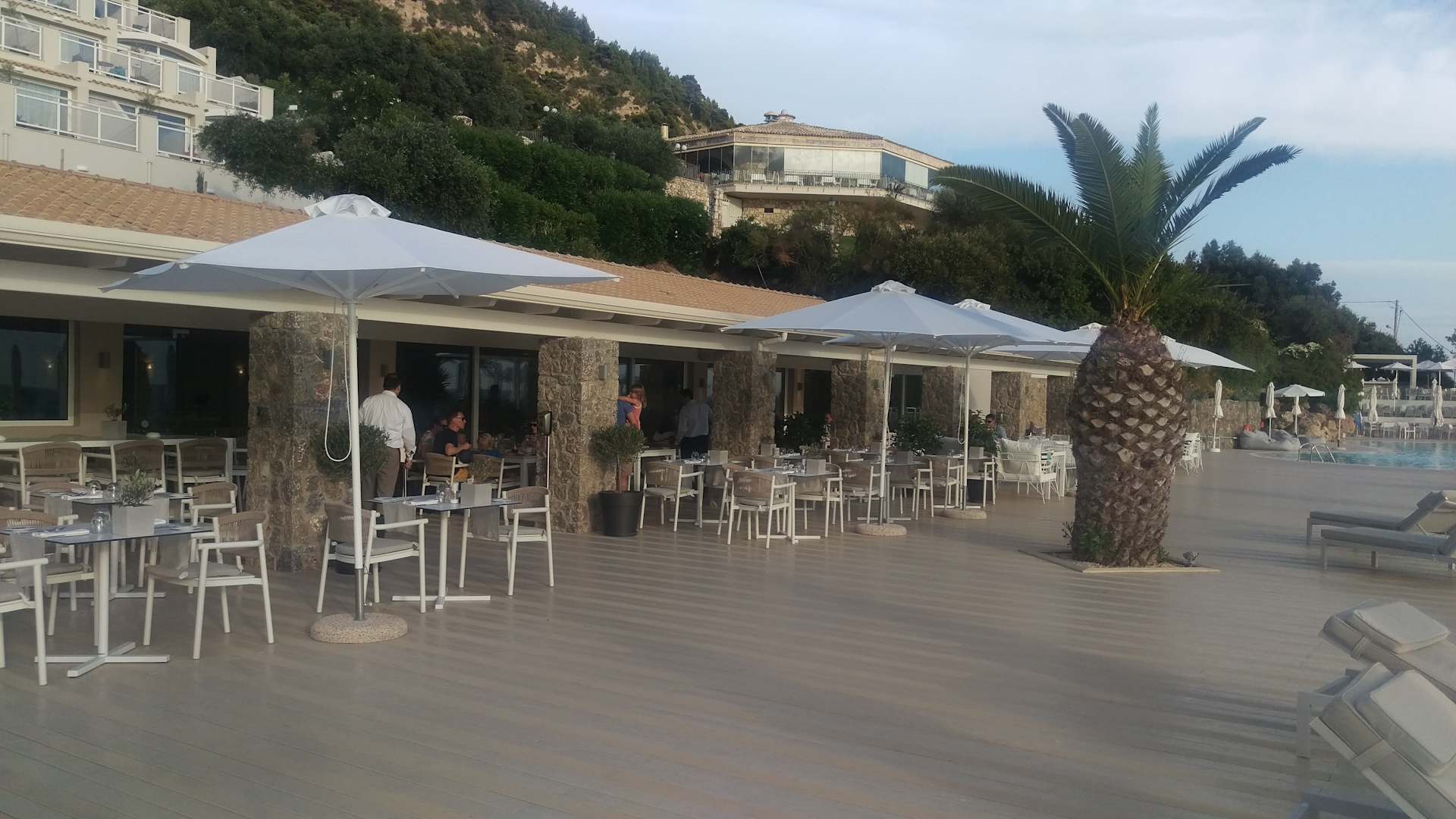 Die zwei Spezialitätenrestaurants Pergola und Olive Tree. Oberhalb sieht man das Hauptrestaurant.