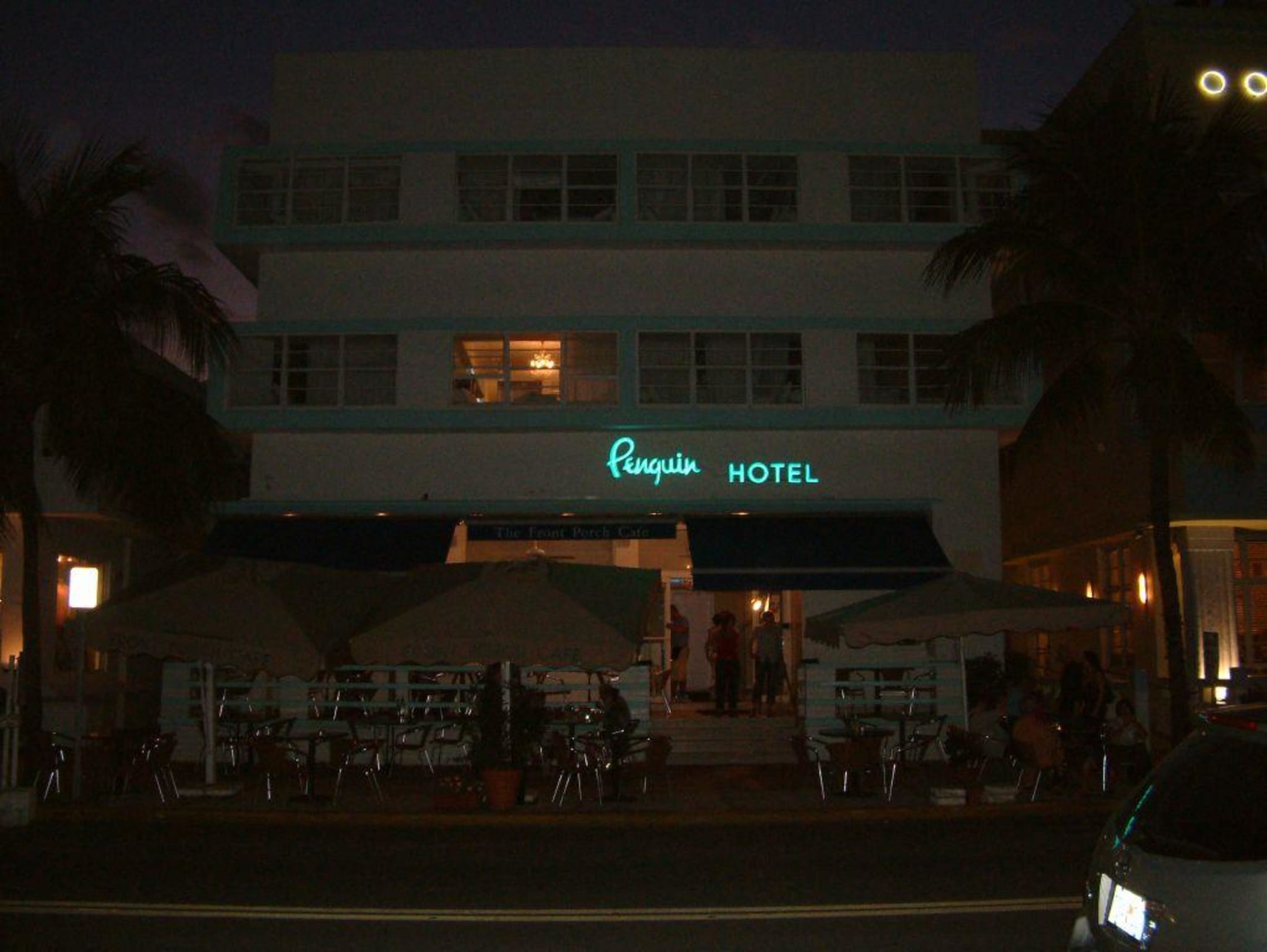 Aussenansicht des The Penguin Hotel am Abend