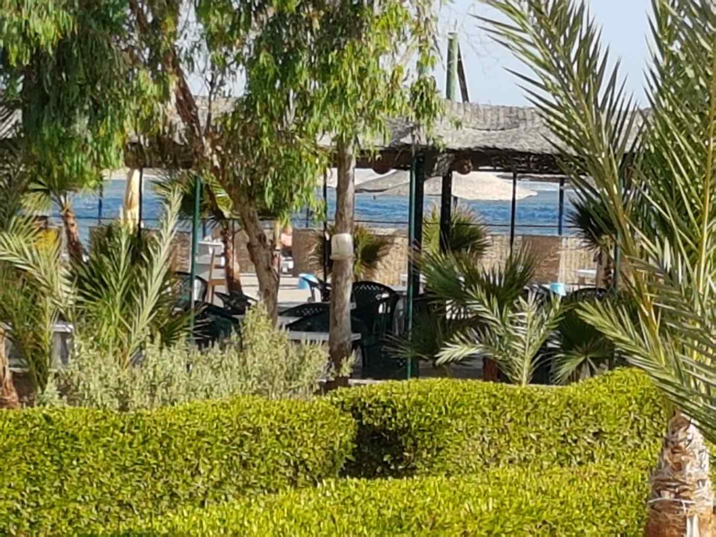 Mit Blick auf die Strandbar