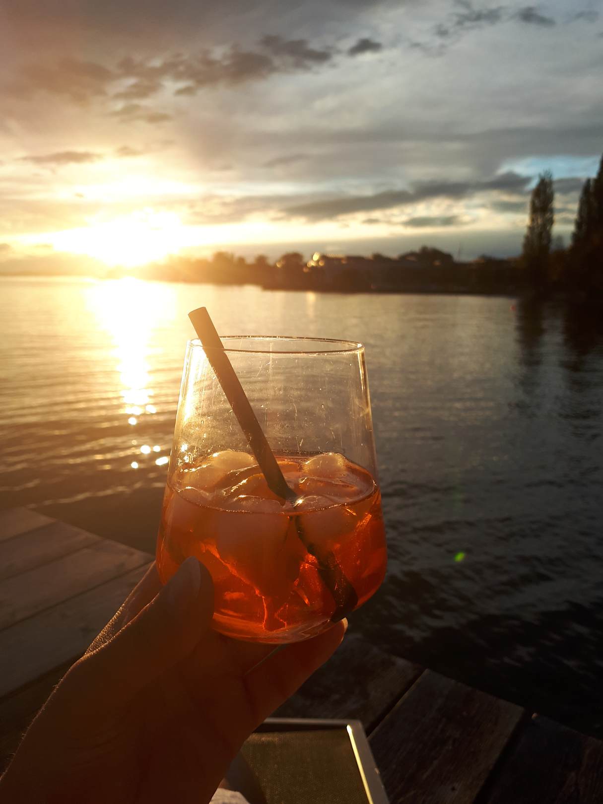 leckeren Aperol-Cocktail beim Sonnenuntergang nach der Massage