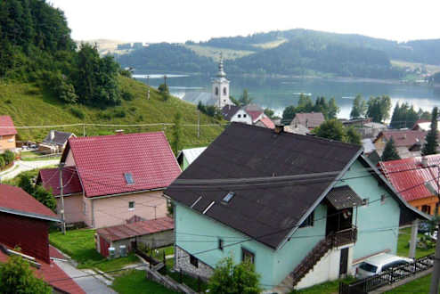 Blick vom Balkon auf Dedinky und den See