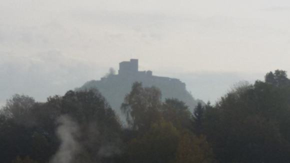 Trifels im Morgengrauen, Blick von der Pension Bergterrassen