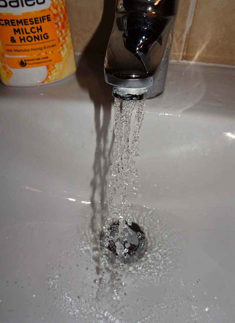ZimmerGrotesk verstopfter Perlator des Waschbeckens im Schlafzimmer
