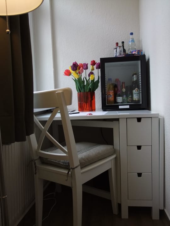 Schreibtisch und Minibar Pension Cafe Karina