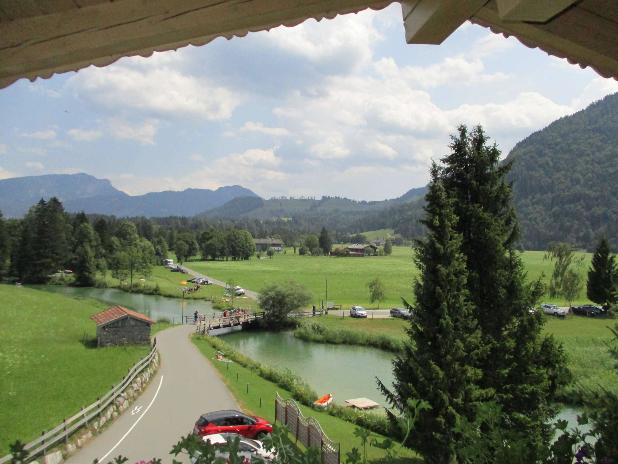 Blick vom Balkon auf die Badestelle