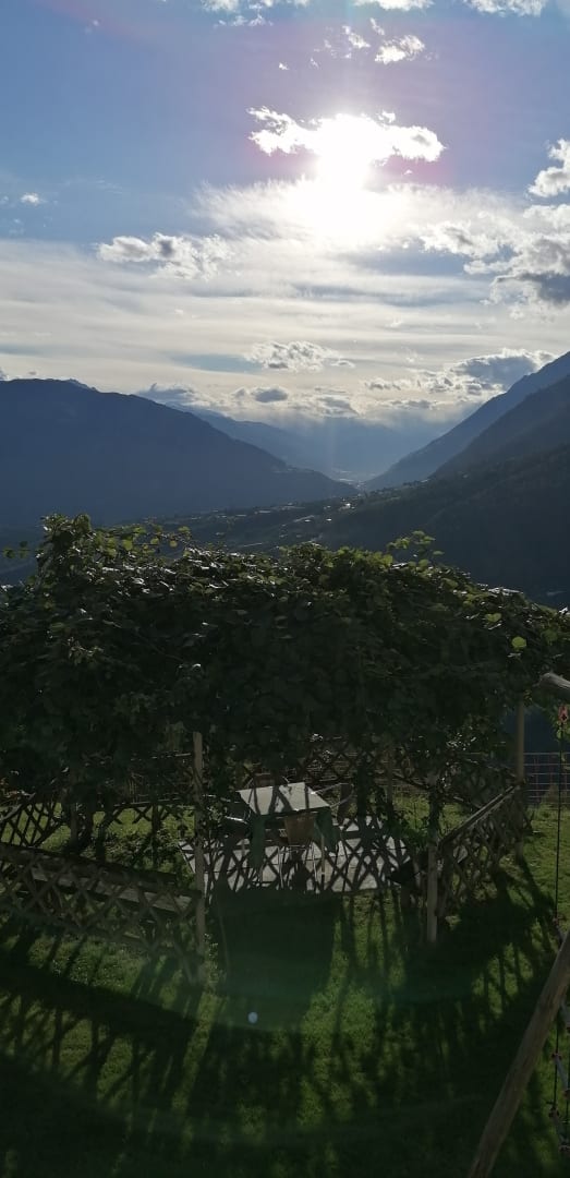 GartenanlageRomantische Sitzgruppe mit Blick ins Tal und in die Berge, hier kann man schöne Sonnenuntergänge erleben