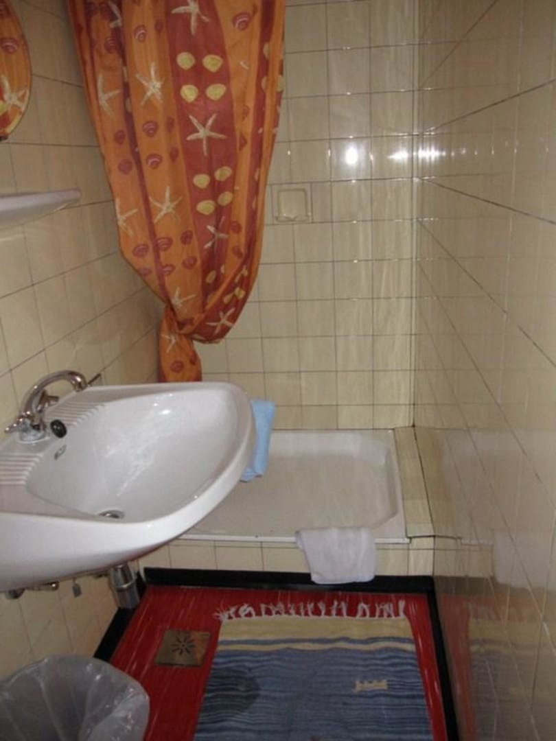 Die Dusche mit Schimmel und "modernen" Fliesen Pension Göschlberger