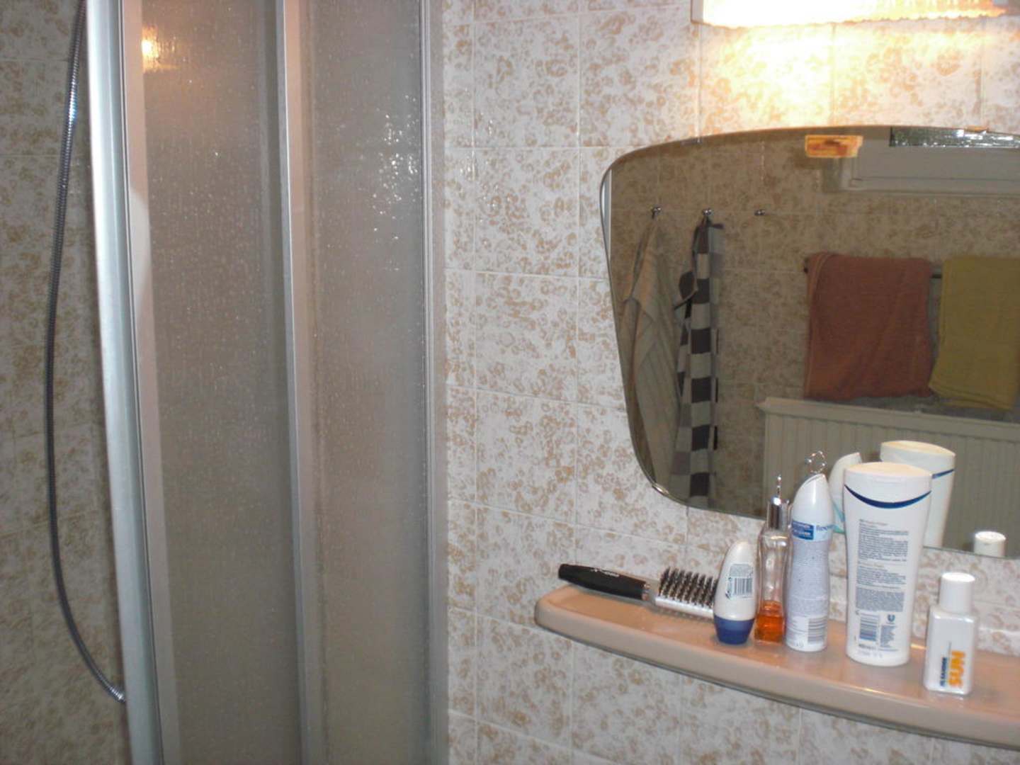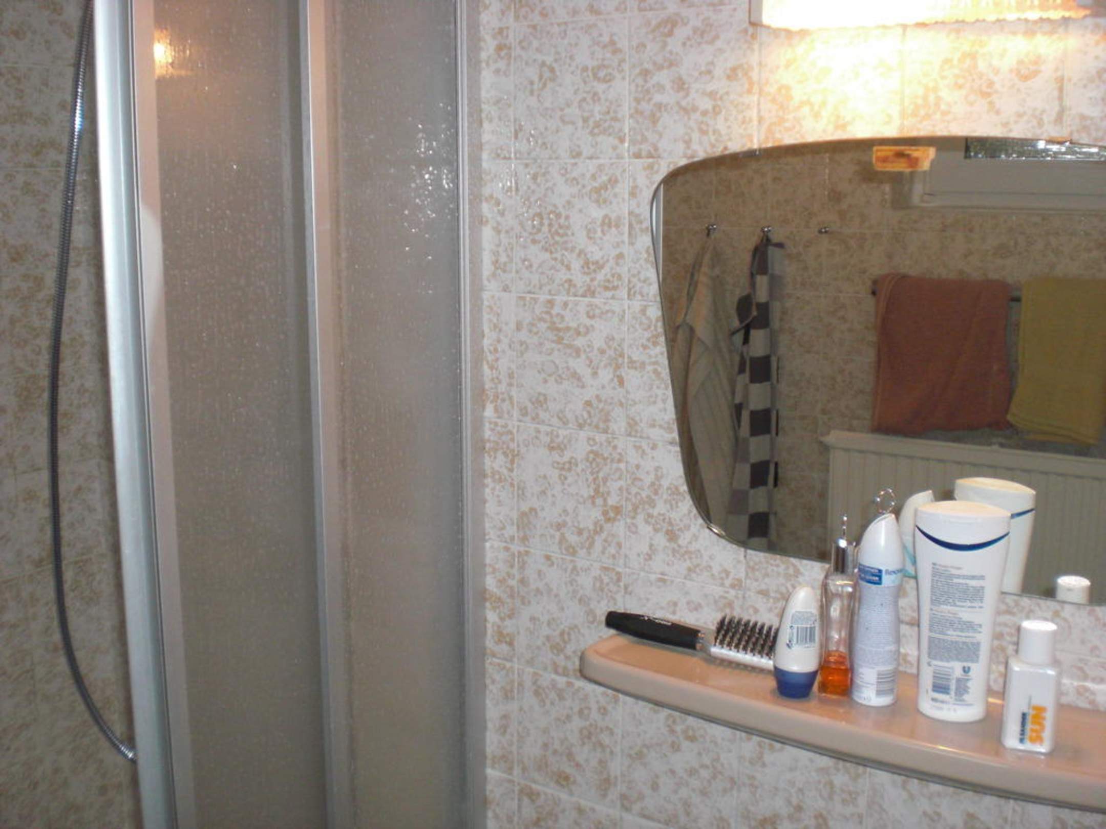 Spiegelablage im Duschraum mit Steckdose für Fön oder Rasierer